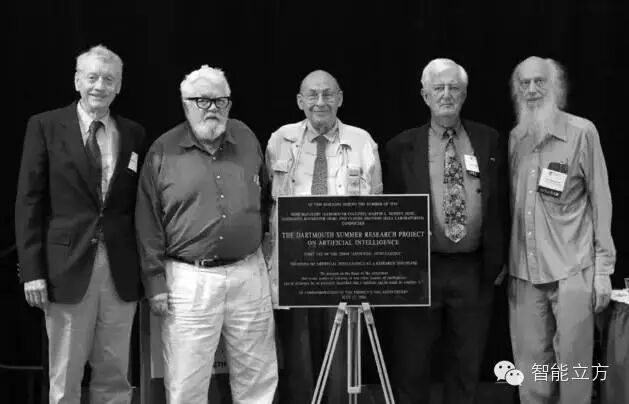 图 2 Minsky与其他四位获得图灵奖的AI研究者(中间为Minsky)